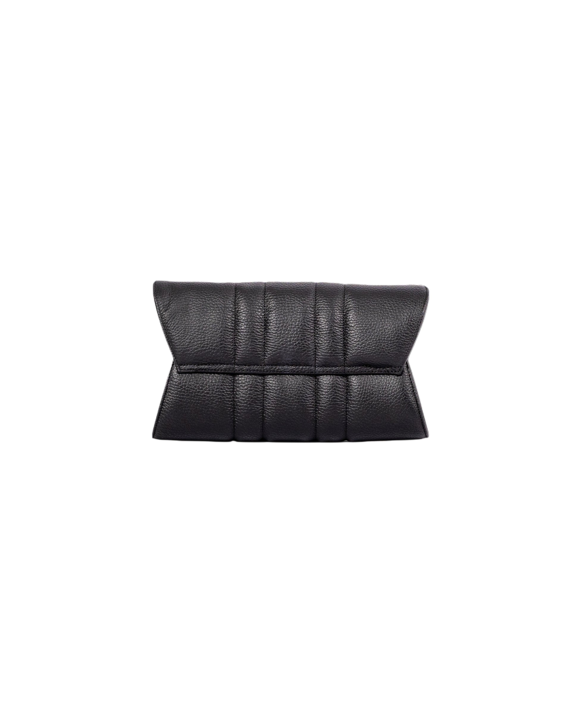 ZOE Black scotch genuine leather clutch bag, featuring a sleek quilted design, a detachable chain strap. Perfect for evening wear, parties, and special occasions. Shop now for a statement accessory!